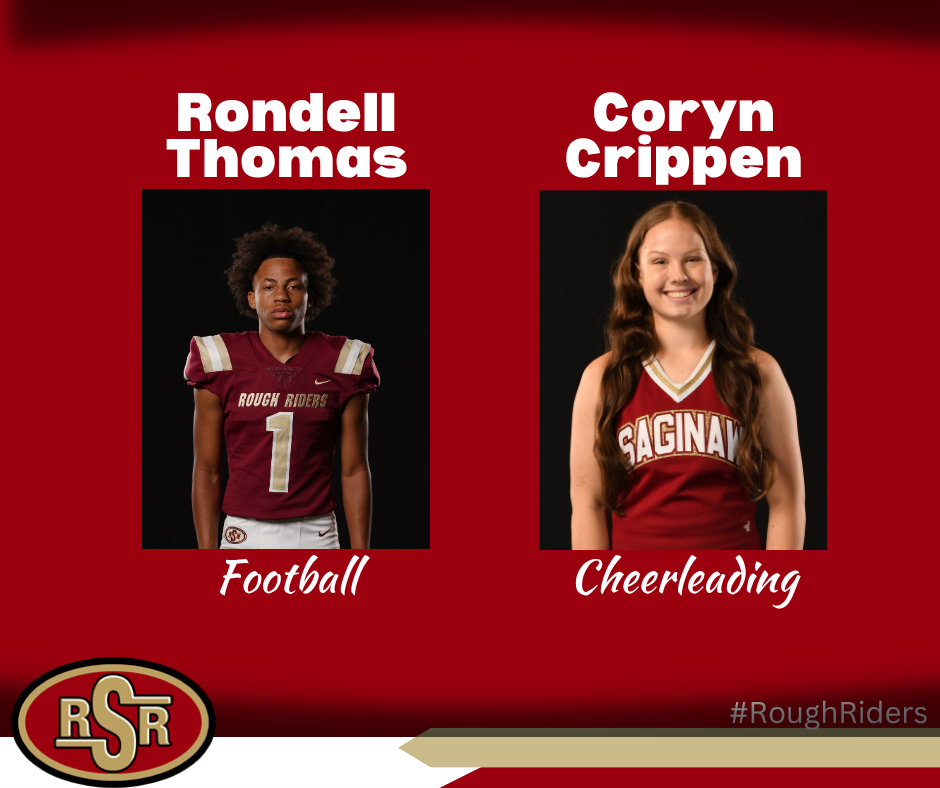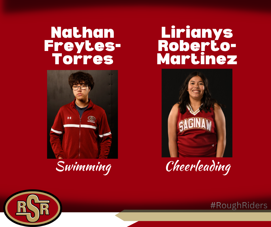 Freshman Sophianne Cortes was nominated by Coach Giles. She is a member of the Saginaw swim team. Sophianne broke the 50-yard freestyle record, winning the race almost 3 seconds faster than any Rough Rider swimmer, girl or boy, has ever achieved before. She also won 100-yard individual medley race at the Yellowjacket Sprint Invite.